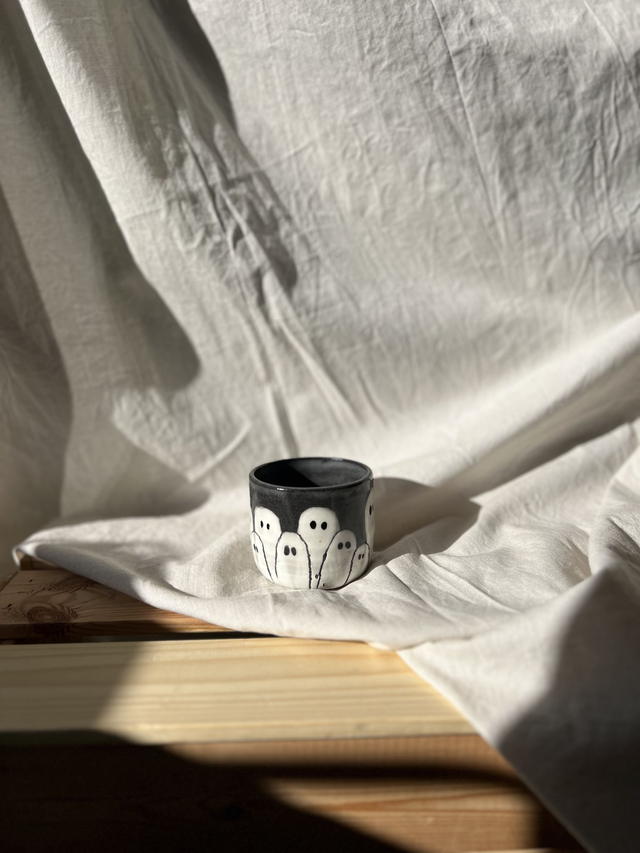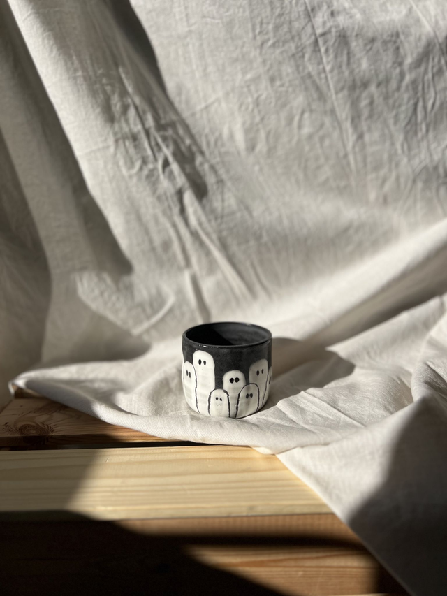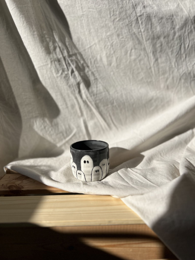 Diese liebevoll gefertigte Keramiktasse bringt charmanten Grusel und herbstliche Gemütlichkeit in deinen Alltag! Das handbemalte Geisterdesign auf dunklem Grund macht jede Tasse zu einem echten Unikat – perfekt für Halloween-Fans, Herbstliebhaber oder einfach für alle, die das Besondere mögen.