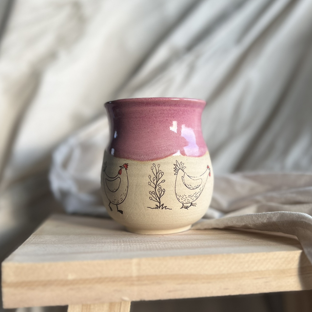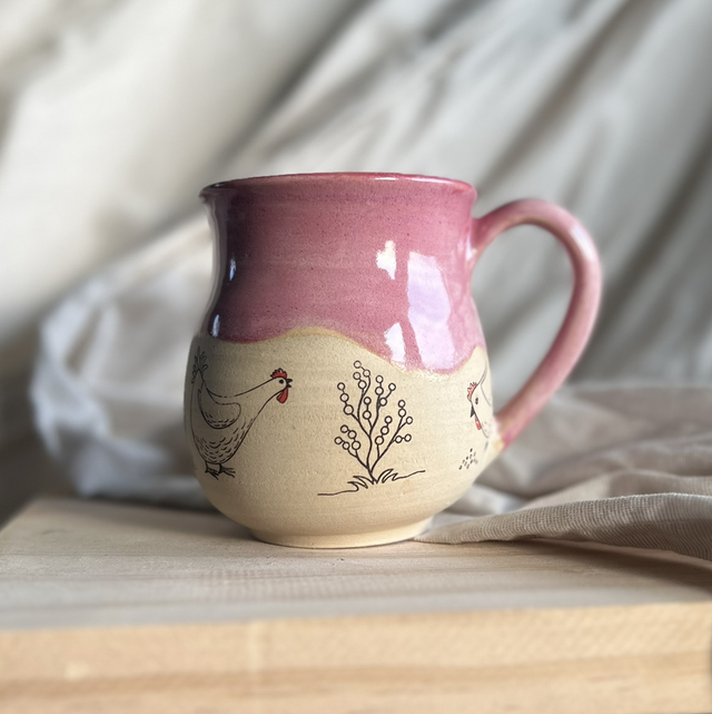 Die Hühner-Tasse ist nicht nur praktisch, sondern auch ein wundervolles Geschenk für Hühnerliebhaber, Landhaus-Fans oder alle, die handgemachte Keramik schätzen.