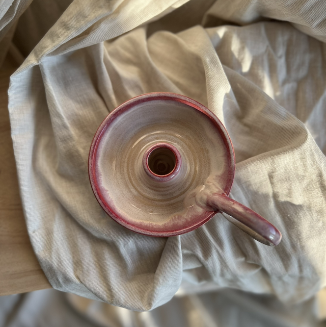 Dieser elegante Kerzenständer wird in liebevoller Handarbeit aus Keramik gefertigt. Die glasierte Oberfläche in sanften Naturtönen verleiht ihm eine zeitlose und zugleich moderne Ausstrahlung. Durch den geschwungenen Henkel mit feiner Spiralverzierung lässt er sich leicht tragen und erinnert an klassische Kammerleuchter vergangener Zeiten.