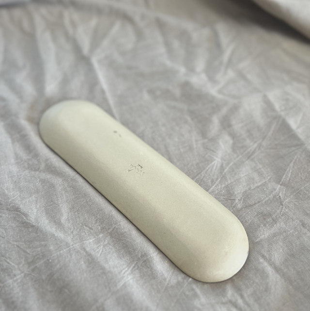 Dieser schlichte, elegante Räucherstäbchenhalter wurde in liebevoller Handarbeit aus Keramik gefertigt. Die längliche Form fängt zuverlässig die Asche auf und sorgt so für ein sauberes Abbrennen deiner Räucherstäbchen.