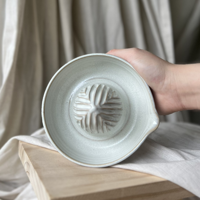 Diese Zitronenpresse aus Keramik vereint Funktionalität mit zeitlosem Design. Von Hand gefertigt und sorgfältig glasiert, ist sie nicht nur ein praktischer Küchenhelfer, sondern auch ein echter Hingucker auf dem Tisch.